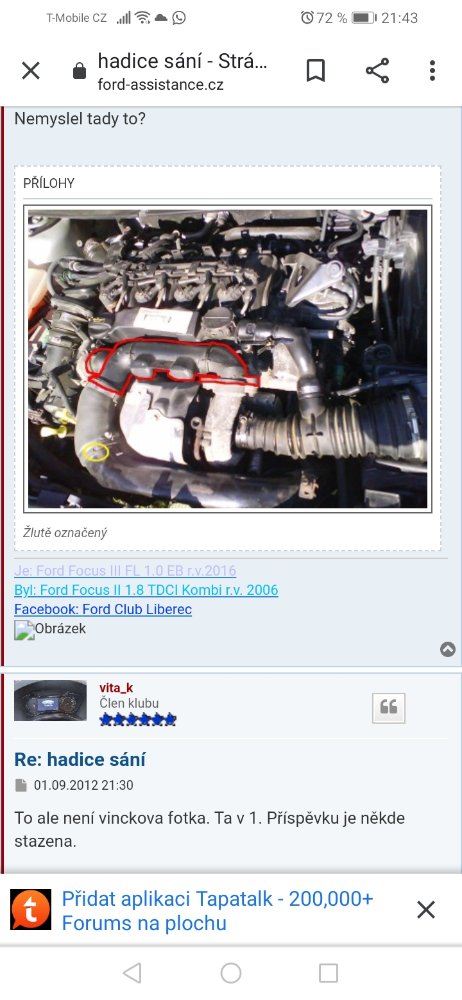 Ahoj všichni, mám ford focus 1.6 tdci. Mám takový problém. Motor vrací kouří do sání. Jak je na turbu plastová příruba, co má tlačit čistý staceny vzduch tak to mám celý okoureny a dokonce se mi i ten plast i rozpustil. Mýdlem jsem, že chyba bude určitě v turbu, dal jsem nové, novou prirubu a dělá to stále. Teď už mi auto dokonce nejde vůbec do otáček a motor hrozně vybruje. Napadá mi pouze egr. Nemáte někdo nějakou zkušenost?