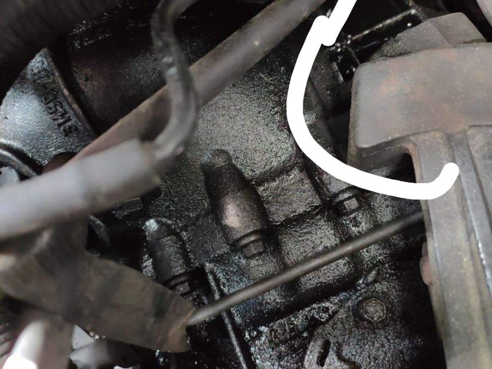 Mikrodírka na vysokotlaké trubičcce vedení nafty k prvnímu válci  (strana u spolujezdce). Moc hezký gejzír. Tak a teď co s tím, na konci týdne...  .