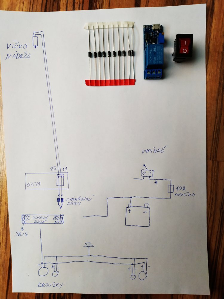 Predpokladám, že Tom bude mať na jeho riešenie minimálne jeden vypínač :mrgreen: ...ja k tomuto dotiahnem kábel od vypínača na automatické sklápanie zrkadiel, tam mám dvojitý a jeden je stále neobsadený, na toto poslúži výborne.