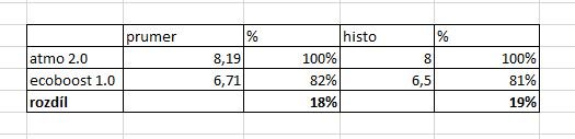 Ale pokud se chceš točit opět na spotřebě, tak asi na datech ze sprintmonitoru ukážeme, zda je to spíš 10 a nebo 20%. "Oblíbené" srovnání atmo 2.0 a EB 1.0: