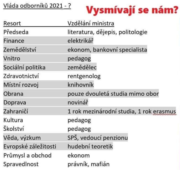Pro porovnání prosím i ministry minulých vlád ve stejném úhlu pohledu jako je to zde :) Vládá odborníků byla právě za Babiše ne?