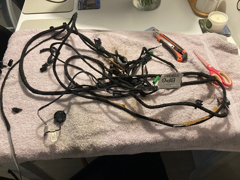 Pro ty, kteří by si HF chtěli taky dodělat - nelekejte se, kabeláž pro mikrofon je ve svazku od prostoru za kastlíkem, přes A sloupek spolujezdce a všechny stropní lampičky až po kufr, takže se toho musí vymotat poměrně dost - konektor C22 (šedá kostka desetipinová) nelze protáhnout mezi palubkou a A sloupkem bez poškození palubky v kraji nebo poškození konektoru - zde doporučuji vypinovat, ale na autovrakovišti je to asi jedno, zda dojde k nějakému drobnému poškození...