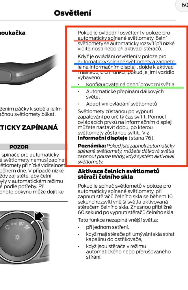 máme v rodině nově FF(WF06XXGCC6EG60393) a má (A) u spínání světel, ale když je venku světlo, tak nic nesvítí. Takže předpokládám, že DLR nedisponuje. Jde DLR nějak aktivovat před diagnostiku, nebo jde i o nutnost jiných předních světel?