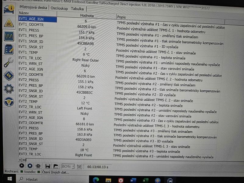 Když jsem zadal TPMS, vše vyznačil tak jsem obdržel tato data viz přílohy