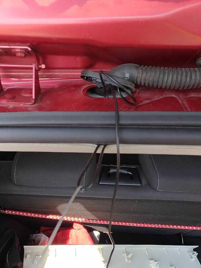 - povolil jsem dva šrouby na levé straně kufru platu u světla interiéru a malinkato povycvaknul. Pak šel kabel prostrčit.