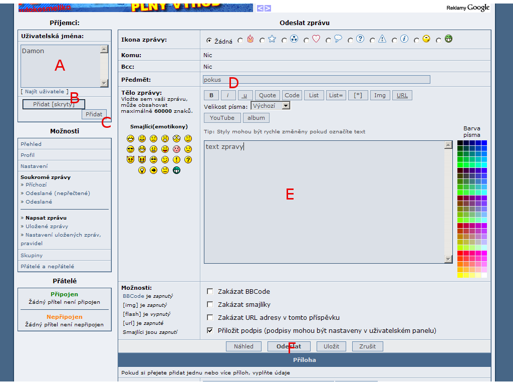 [*] F) tlacitkem Odeslat zpravu odesleme