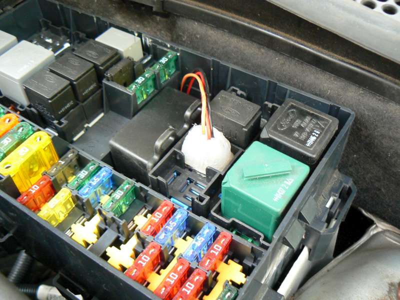 - vše zapojeno v patici pro relé denního svícení, jen ten "konektor" se musí ještě doplnit (došli náboje v tavné pistoli) a stříknout na černo