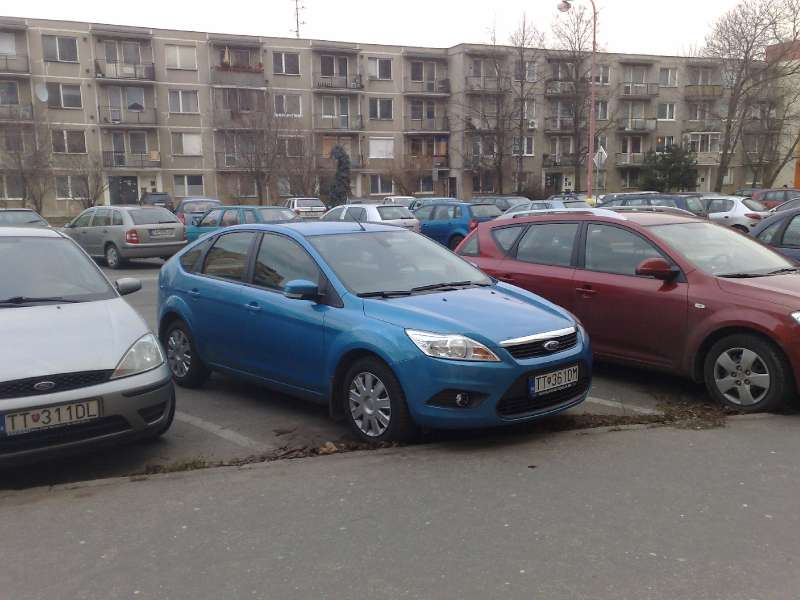 ale vsimnite si co stoji vedla... tie fordy sa proste pritahuju... mame na parkovisku este 2 focusy 2 pred FL (jeden pribudol teraz na vianoce) a jedneho S-maxa, Fusiona a Fiestu a velmi casto sa stava ze stojime pri sebe dvaja, traja :D :D :D taka mala firemna sudrznost... a to na full pretazenom parkovisku (toz panelakove parkovanie)