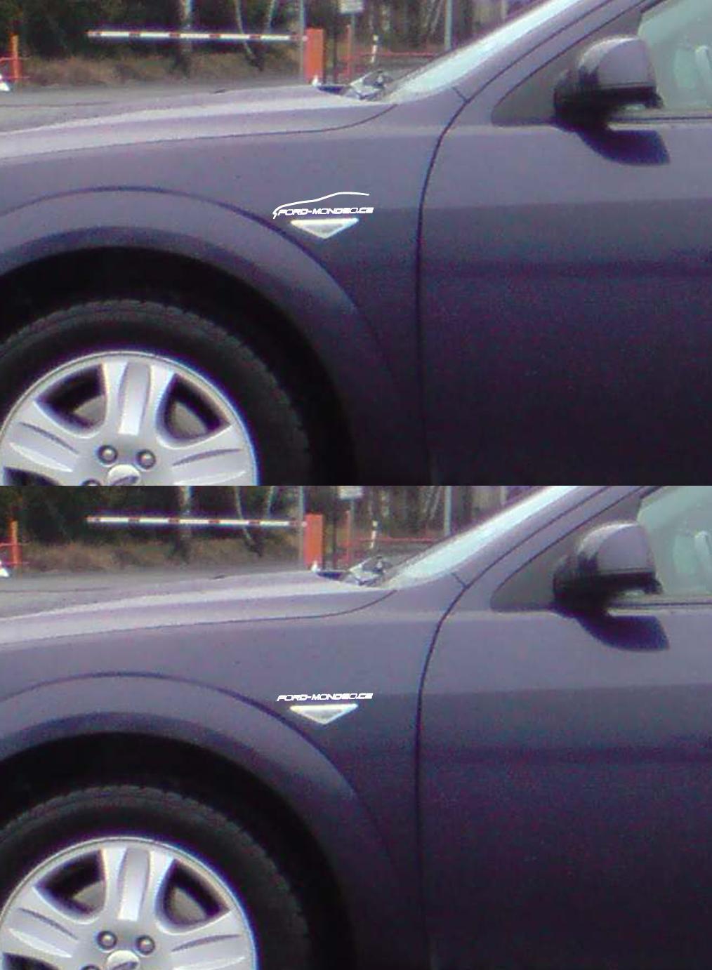 Samozřejmě na stříbrné káře , černá nálepka. Proti nálepkám moje ječela měsíc , další bych nerozchodil, něco jiného budou ford-mondeo podložky pod značku. :mrgreen: