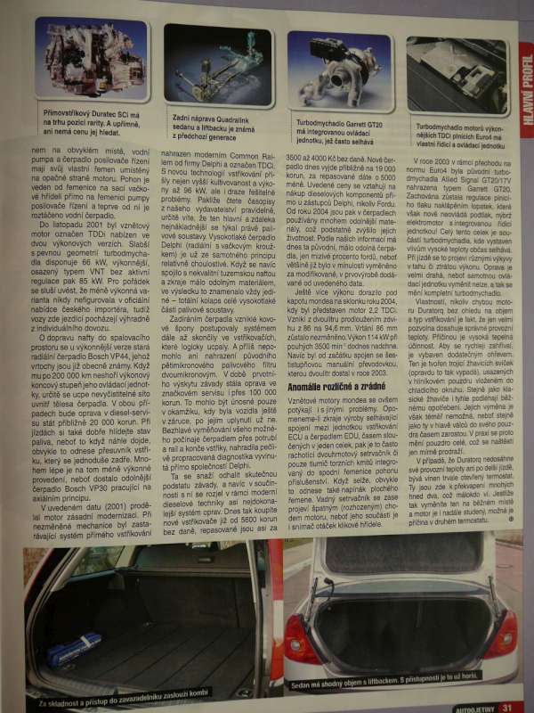 Moc pekne, akorat mam z toho smisene pocity... nejdriv jsem mel dojem, ze se mam bat, ze se mi podela motor (sani) a spojka (dvouhmotak, ale ten snad u benzinu nebyl) a pak ve druhem clanku je to celkem bezproblemove auto