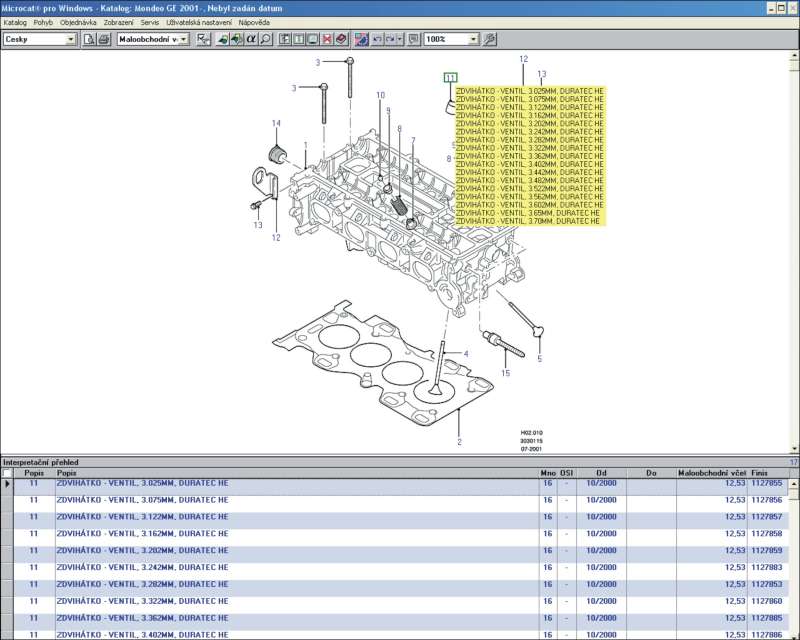 hlavu jsem po demontáži předával ne úplně odstrojenou ( se vstřiky,atd.) s tím, že zpátky jsem už dostal hlavu přebroušenou, natlakovanou + odzkoušená vůle ventilů, přebroušení sedel ventilů a vyměněné těsnění dříků. Jestli má mondeo seřizování vůle (podle mé domněnky snad jen při velkém opotřebení, jinak musí běžné vůle zvládnou pomocí tlaku oleje hydroštel) ventilů pomocí podložek nevím ,osobně jsem přímo u práce při kompletaci hlavy nebyl a hlavu jsem dostal zpět již nachystanou na montáž. Jestli se dají gufera měnit bez demontáže hlavy nevím :( ,prvotní úkol byl výměna těsnění pod hlavou a ty gufera jsem nechal udělat, že když už je hlava dole, tak je nechám vyměnit taky, byly v sadě těsnění.Na obrázku je čerstvě demontovaná hlava :)