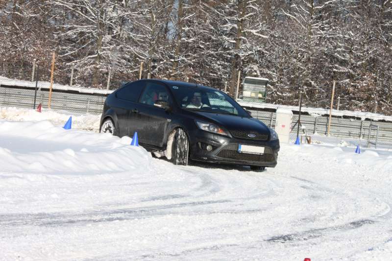 Celkově byly 3 rychlostní úseky (čtvrtý kvůli velkému množství sněhu nebyl) a každý se jel 2x. Jeden slalom u paddocku, jeden větší slalom na rozlehlém parkovišti a pak osmička. Všechno bylo super, na začátku tam byl sníh a klouzalo to míň, časem se to prodřelo na led a klouzalo to hodně.
