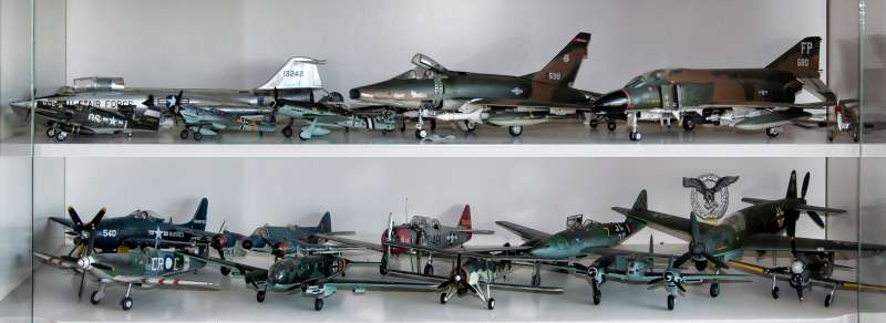 Jinak pohled na pár mojich - historyckých - čím dále tím více chřadnoucí plasťáky 1:72 a 1:48.Ještě jich mám ještě v krabicích bednu (1:48).K tomu ještě 2 stříkačky 1xBadger a Aerograf .Už to asi nikdy stavět nebudu.Také jsem stavěl odznaky