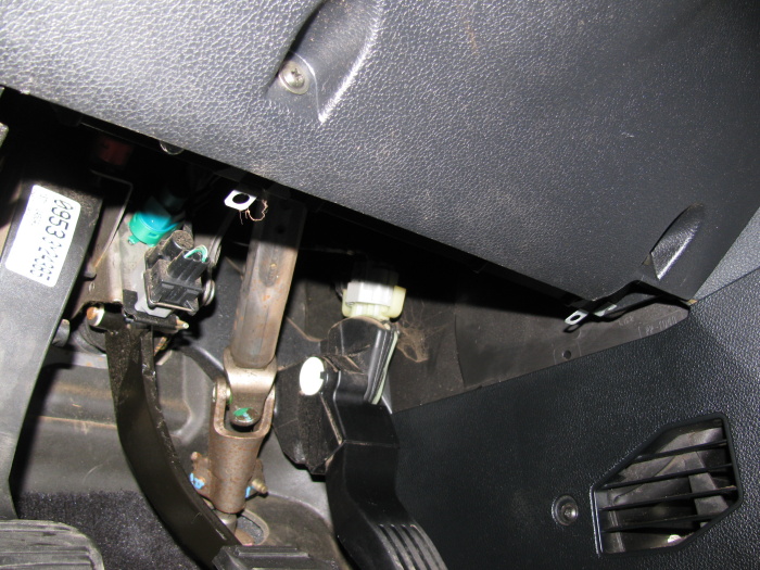 Manžetu tam taky myslím nemám,ale chybí ti filcový kryt který kryje celý ten prostor od pedálu nahoru,teda pokud si ho nesundal pro nafocení.