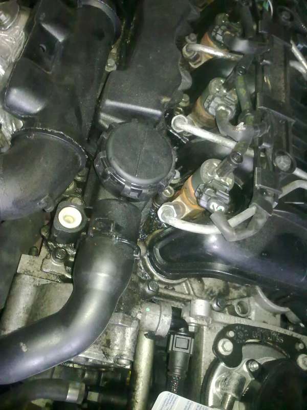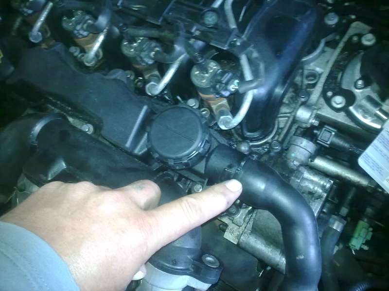 taky tam mam olej ale rozpojil jsem tu hadici jak na foto ukazuji prstem a vni mam po stenach hadice olej kdyz jsem tam strcil prst tak jsem se zaspinil neze by tam vylozene stal olej tak si rikam nemuze to vitikat odtud?