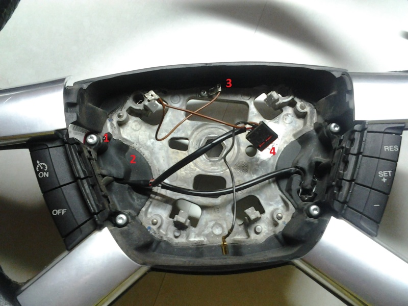 Z gemu by ti měli véct kabely do konektoru pod volant, odtud dál do volantu pod airback, tam končí v konektoru C896, v něm je připojený konektor C921 (do něj jsem přidával piny z tlačítek)