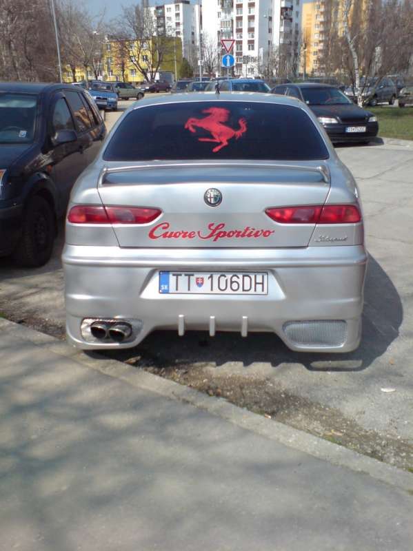 najprv chlapec nahodil tie disky, ktore sa mi velmi pacia hned by som ich bral,... no a o tyzden prisiel pred robotu s tymito upravami, necham na posudenie kazdeho sudneho cloveka (ja som myslel ze ta alfa uz od vyroby je celkom pekne auto ale toto mu dava punc exkluzivnosti )