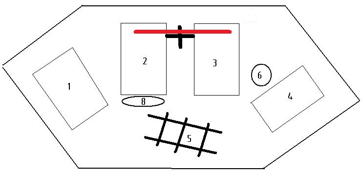Tyc 2,4metru vysoka, podstavec z plochacu do krize. Kluci by staly zadnim kolem na podstavci at je hezky pritlacovana k zemi a nebula se. Na nem by uz byla povesena cedule (cervena cara).
