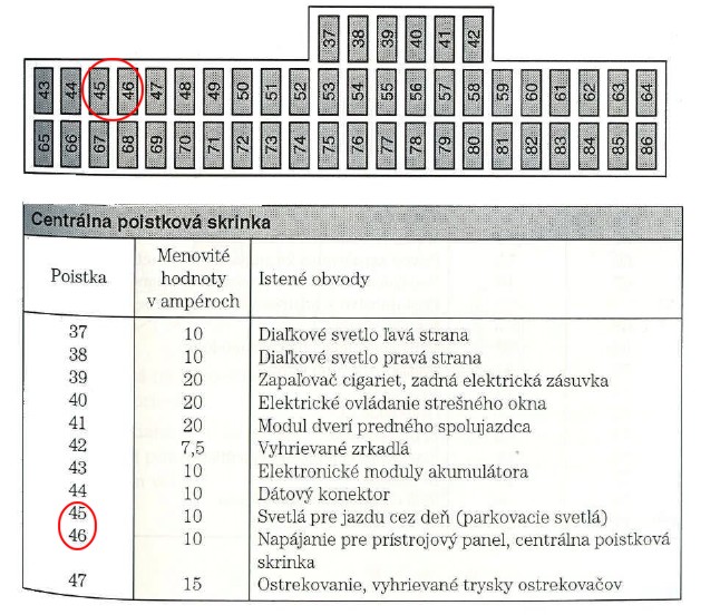 . Pozici 45 mám zrovna prázdnou (denní světla, nemám). A napájení pro přístrojový panel zůstalo tak nezapojené (nefungoval ani imobilizér), ikdyž je zajímavé, že od polohy klíče II vše fungovalo jak má .. nu, ale nyní už zase