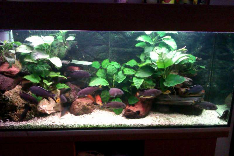 V nádržích s Malawi je světlé dno naprosto běžné. Tady je moje AQ