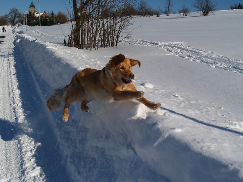 No, jednak radosti a jednak starosti a taky to leze do peněz, ale rasa je to přátelská a kontaktní a sportovní a gaučová a všude plno chlupů, sem tam něco vyhrabáno a od mladé i rozkousáno.