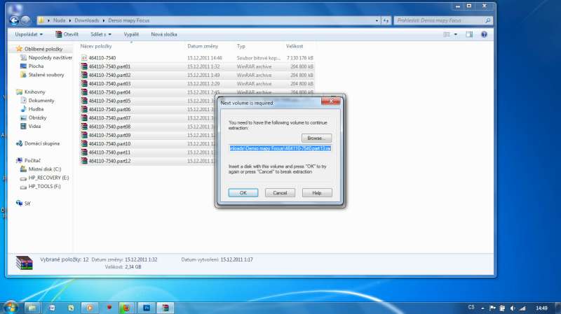 Chybí ti 13tá část balíku... musíš ji ještě stáhnout, pak se to rozbalí ;-)