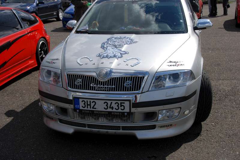 Jak to tady pročítám tak určitě musím ulovit ochcávku místních cikánů, který za 14 dní ze seriový fialový oktávky udělali něco nepopsatelnýho :-D dozadu na blatníky dvě příšerný samolepky alá airbrush, rychlý pruhy ze !!zlatý!! izolepy, zrcátka oblepený taky zlatou izolepou, všude po autě takový ty jakoby chromový lišty.. no hnus velebnosti, jen si nejsem jistej jestli jí eště maji, teď jezděj týmovým Fakírem a zbylý auta maj rozebraný před barákem na parkovišti na špalkách.. :-D