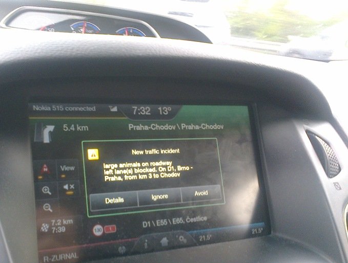 jsem vubec netusim, ze navigace umi i hlasky o zveri na silnici (byl to mlady srnecek)