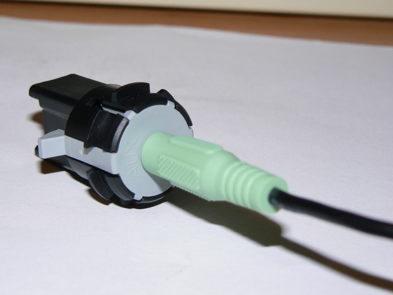 Zapojení AUX kable jde snadno, vzadu na konektoru rádia je jediné volné a vhodné místo :-) Teď už jen opatrně vyvrtat díru v přihrádce a bude hotovo :-)