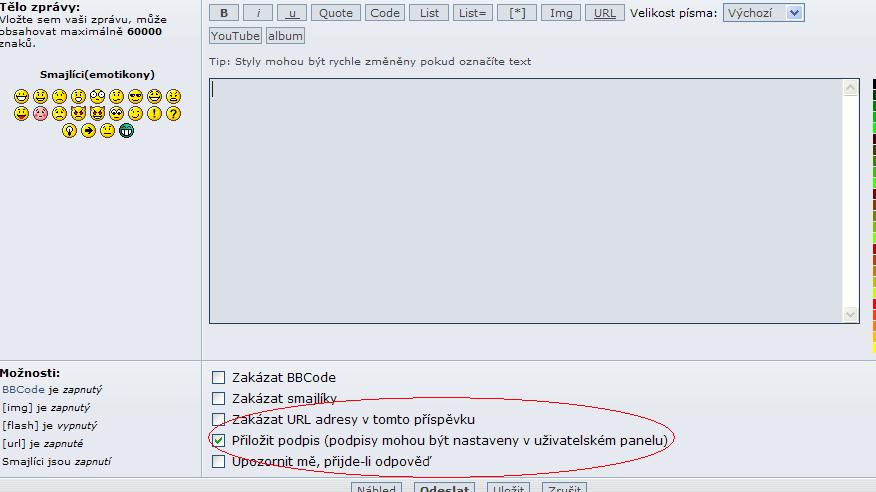 Všimni si, že když píšeš příspěvky můžeš nebo nemusíš připojit podpis!