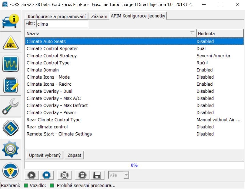 Akorát teď vidím že mi zmizela po té aktualizaci záložka klimatizace... vlezl jsem do forscanu ale nenašel čím by to mohlo být, nemáte nápad? Mám pocit že po aktualizaci na 3.4 jsem dal Climate Domain na Enabled a jelo to... Teď jsem zkusil toto zas vypnout, taky zkusil Climate Icon ale nic... Dole je vše co vidím když dám hledat clima, nic už mě nenapadá čím by to mohlo být...