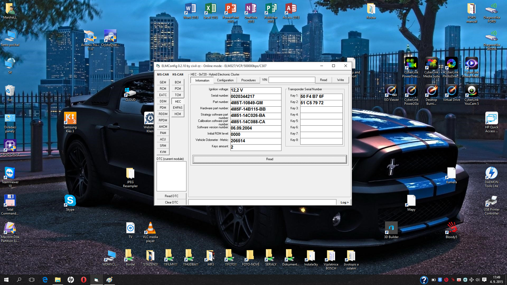 klíče nebo inicializovat některé moduly, které se podílejí na imobilizéru auta,