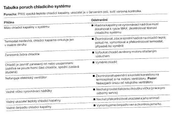 Poruchy chlazeni v Jak na to jsou jen pro vysokou teplotu. Pokud nejde dosahnout vyssi teplotu chladici kapaliny, lze to vysvetlit jen, ze nefunguje spravne termostat - propusti, i kdyz je kapalina studena, motor musi zahrivat cely objem chladici kapaliny a ne jen malou cast (objem v motoru, vymeniku tepla pro topeni, chlazeni oleje).