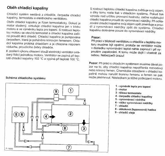 U normalne fungujicicho chlazeni se nejprve zahriva mensi cast kapaliny a pak pomoci termostatu se na chlazeni podili zbyvajici cast.