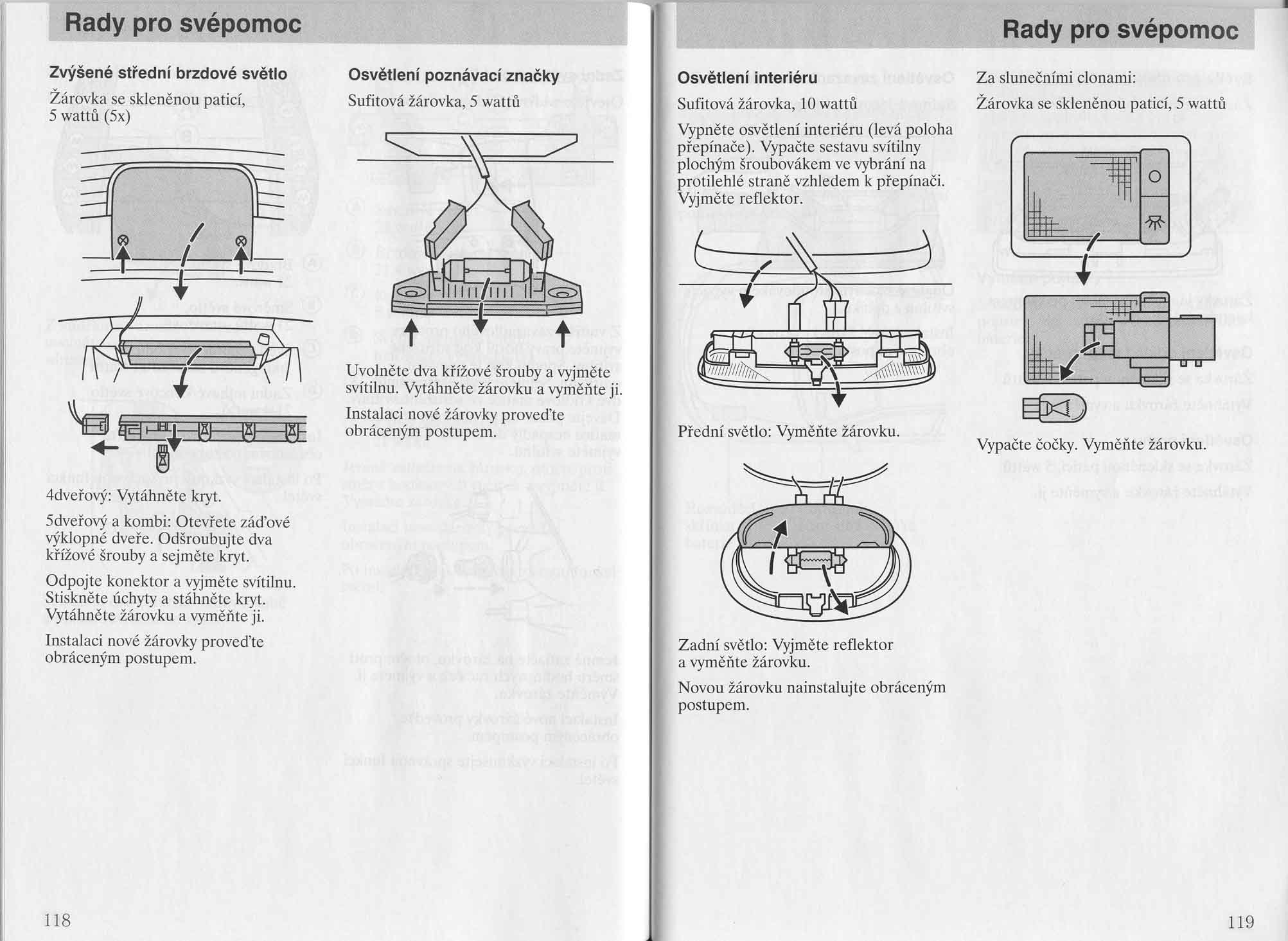 Osvětlení pod sluneční clonou: W5W (tam sem se nedival, ale tam tusim co sem nekde cetl jsou W5W
