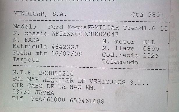 Doplněno: Podložky pod RZ obsahovaly magickou frázi Renting de vehiculos