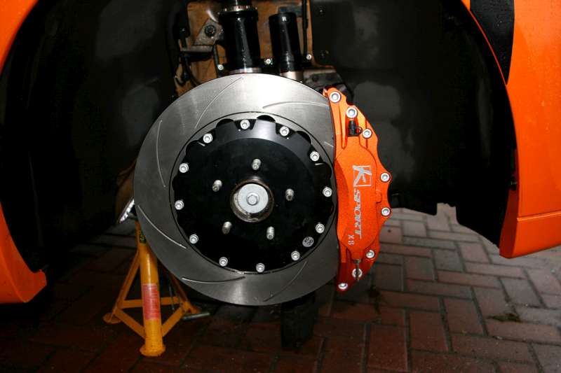 Budou to tedy přední brzdové kity AP Racing - 6ti pístek s kotouči 362 mm. Brzdové desky budou typu Galfer FDRR1080. Jak vlastní brzdy, tak i brzdové desky jsou totožné s těmi, které se používají na Seatech Cupra při závodech Seat Supercopa.