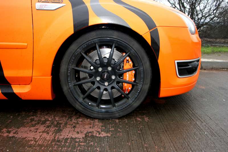 Focus II. ST - r.v. 2006, úprava Wolf Racing (340 PS,545 Nm), Bilstein B16 Gewindefahrwerk PSS9, AP Racing (kotouče 362 mm, 6 pístků) - desky Raybestos směs ST31, samosvorný diferenciál Quaife, výfuk MILLTEK turbo back, Semi Slick TOYO R888