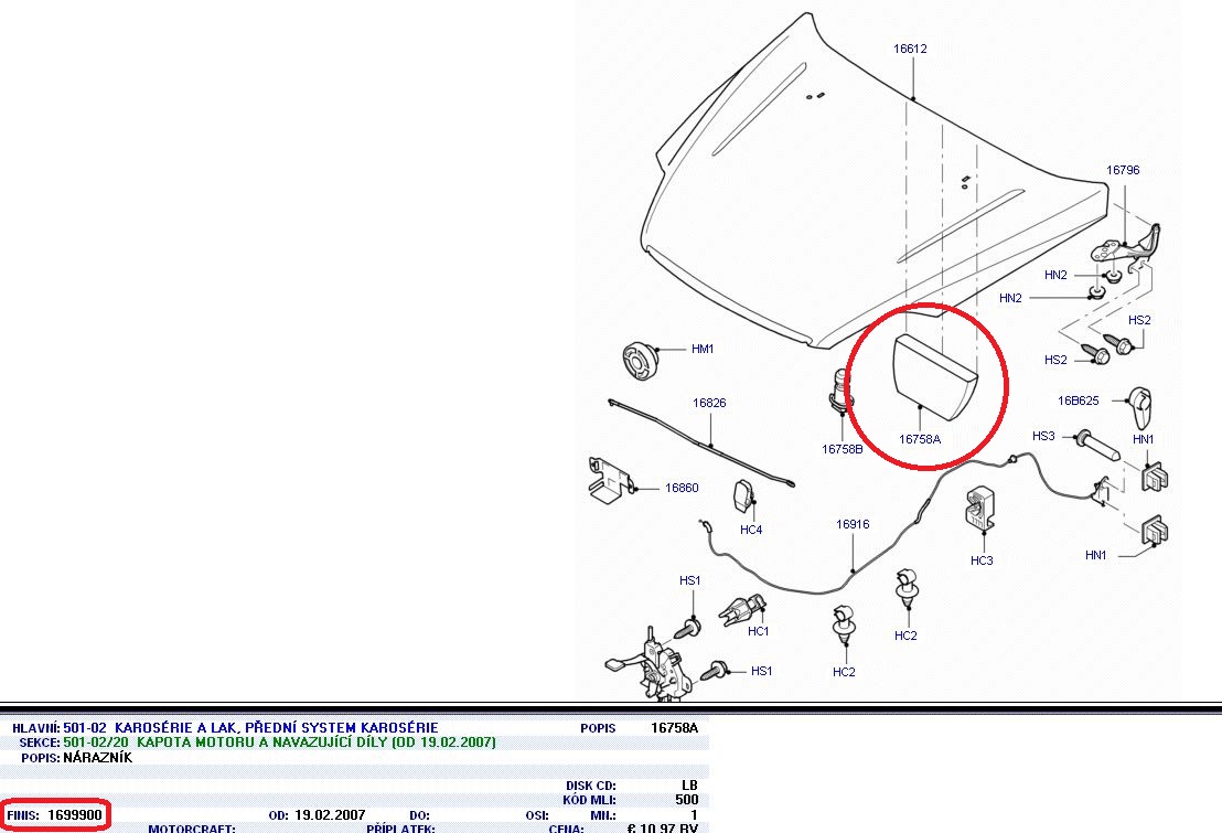 V červeným kroužku na obrázku je ta pružina, co vrací páčku, se kterou hýbe lanko. Na druhým konci (dole) té páčky je uchyceno lanko. Této páčce je třeba pomoct doprava, když zůstane viset zámek a nejde zacvaknout kapota!![]()