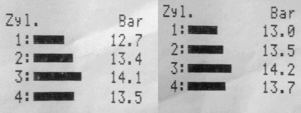 Tak další příspěvek do mé multi-logie. Včera mi kamarád změřil tlaky ve válcích. Průměr ze dvou měření je