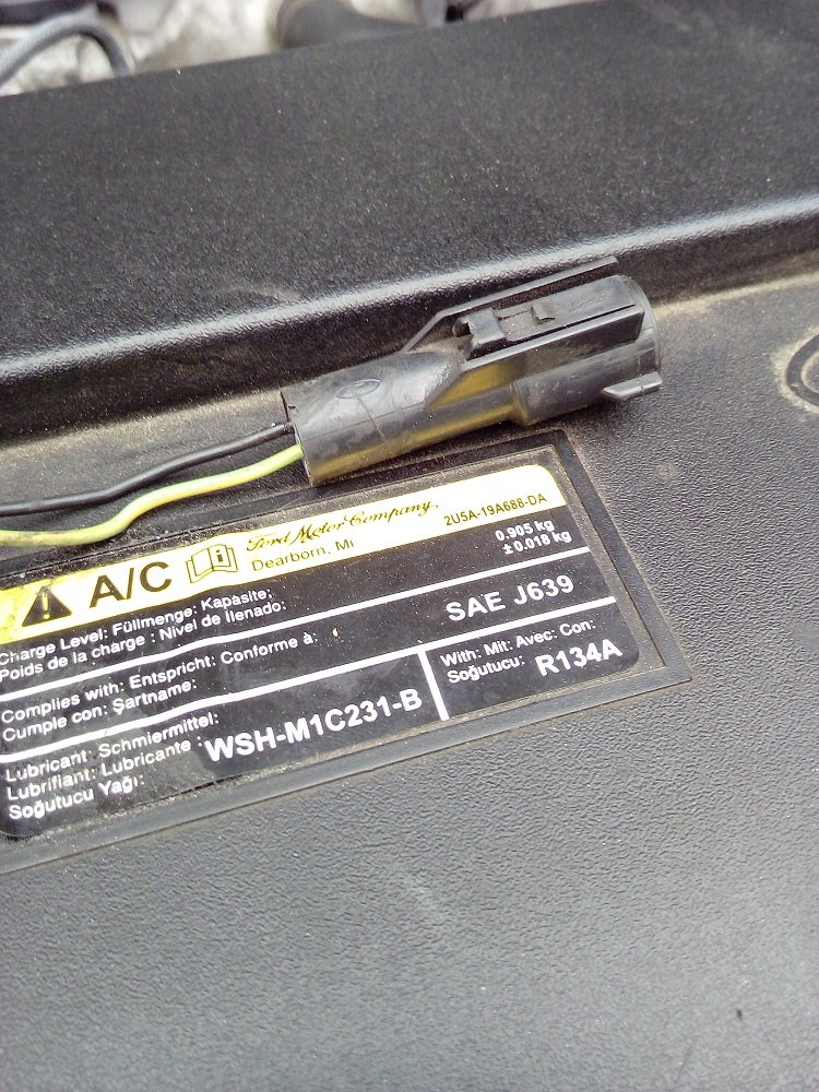 Když jsem odpojoval konektor od kompresoru, všiml jsem si že ten zelený drát se žlutým pruhem (+), se v konektoru hýbe 2 mm dovnitř a ven a když s ním otočím. tak se pin v konektoru nehýbe
