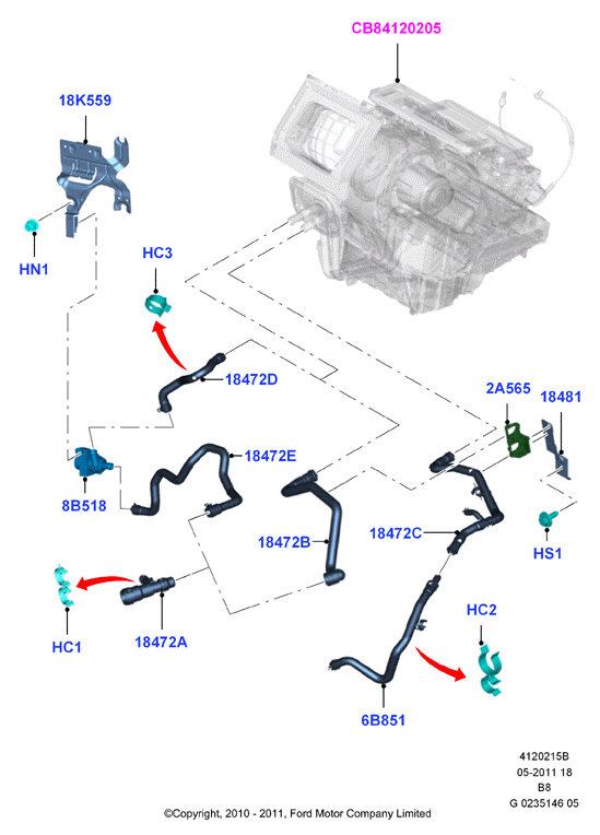 Díky a 8B518 je termostat případně nějaký ventil? Bude asi za motorem těsně pod sklem tipuji. Neni mi to z obrázku úplně jasné