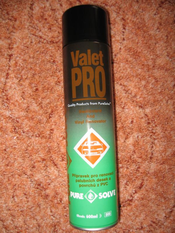 zdar, používám valet PRO, je to od firmy pure solve. Je to pripravek pro renovaci palubnich desek a povrchu z pvc. Vydrzi ti celkem dlouho. Je to ve spreji. Normalne se to nastrika, kde toho mas vic tak to setres. Voni to a je bomba pac to odpuzuje prach. Fakt muzu doporucit, nebo kdo ma zajem at se ozve.