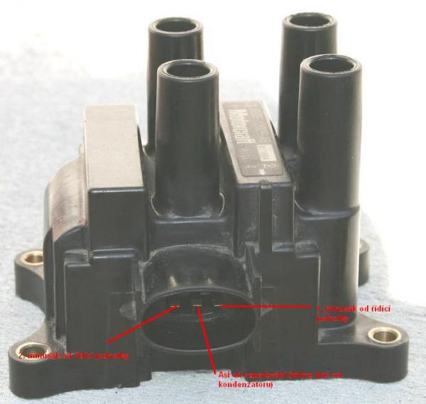 Škoda, že jste mi nikdo nezměřili odpor v konektoru k cívce (vypadá jak rozdělovač - vedou z ní čtyři kabely ke svíčkám) - jsou tam tři zdířky, potřeboval bych změřit odpor mezi tou prostřední a tou vpravo, tou prostřední a tou vlevo.