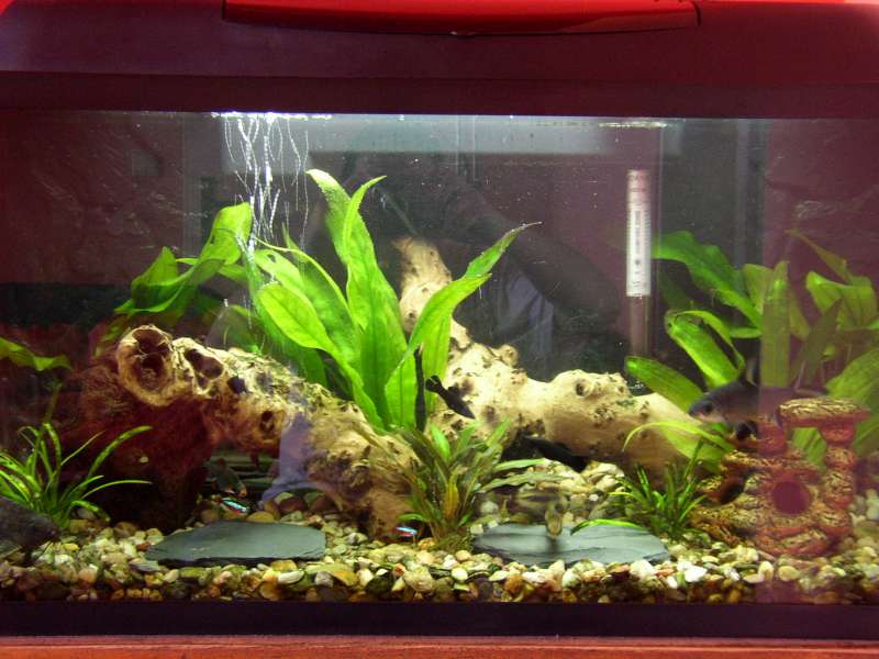 Vypadá dobře, kolik litrů má akvárko? Tu parmičku žraločí máš jen jednu? Ty se mě taky líbí, ale jsou hejnové a dorůstaj do větších rozměrů. Já mám akvárko jen na 100litrů.