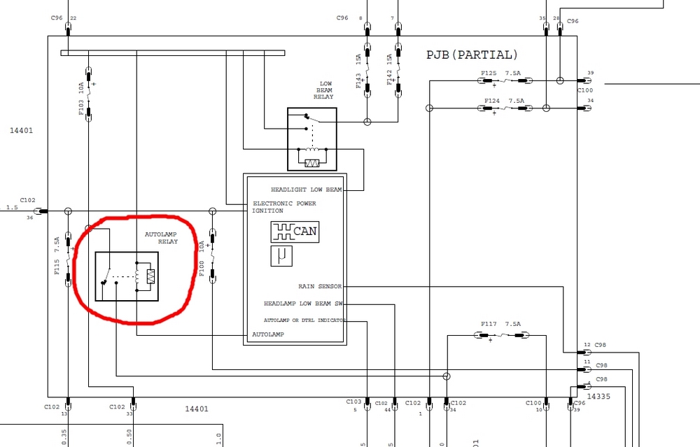 Nemám samozřejmě kontakty pro denní svícení a automatické rozsvícení světel. To je věc kterou teď řeším jiným způsobem a potřeboval bych vědět kde se nachází relé označené AUTOLAMP RELAY viz obrázek se schématem. Myslím si, že uvnitř GEMu se nacházet nebude, ale vůbec nevím kde ho hledat a pokud mi funguje poloha AUTO, tak by tam mělo být.