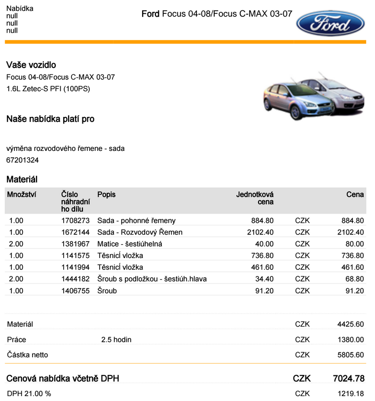Pozadal jsem o cenovou nabidku ve Fordu pro auta starsi 5 let (-20%)
