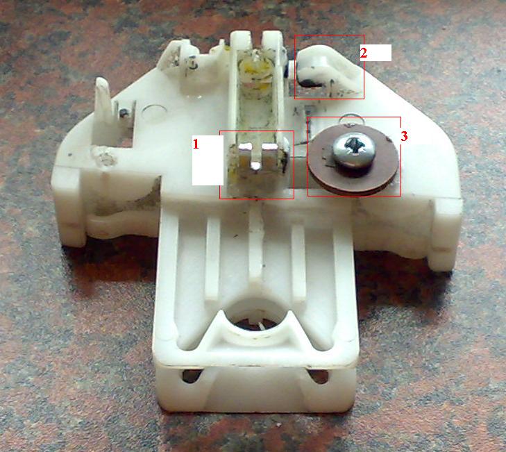 2- takhle vypadá kousek, který jsem nahradil šroubem s podložkou 3 5- kovový kousek z druhé strany 4- tenhle vymezovač taky nakonec nevydržel, takže znovu nahrazen šroubem