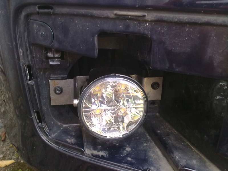 Tak světla namontovaný. Nejvíc práce snad dalo sehnat matroš na držák. Měl jsem 2mm hliník, ale nějak se mi nepovedl první kousek, a poněvadž jsem neměl další materiál musel jsem vzít za vděk 1,5mm nerezem. Ještě přemýšlím nad tím relátkem, protože mi to dělá onu leaving home funkci. Ale docela se mi to zamlouvá, tak ještě uvidím jestli ho tam nabastlím