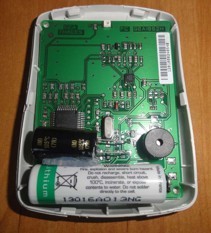 Deska plošných spojů. Baterka vypadá, že ji není jednoduché vyměnit